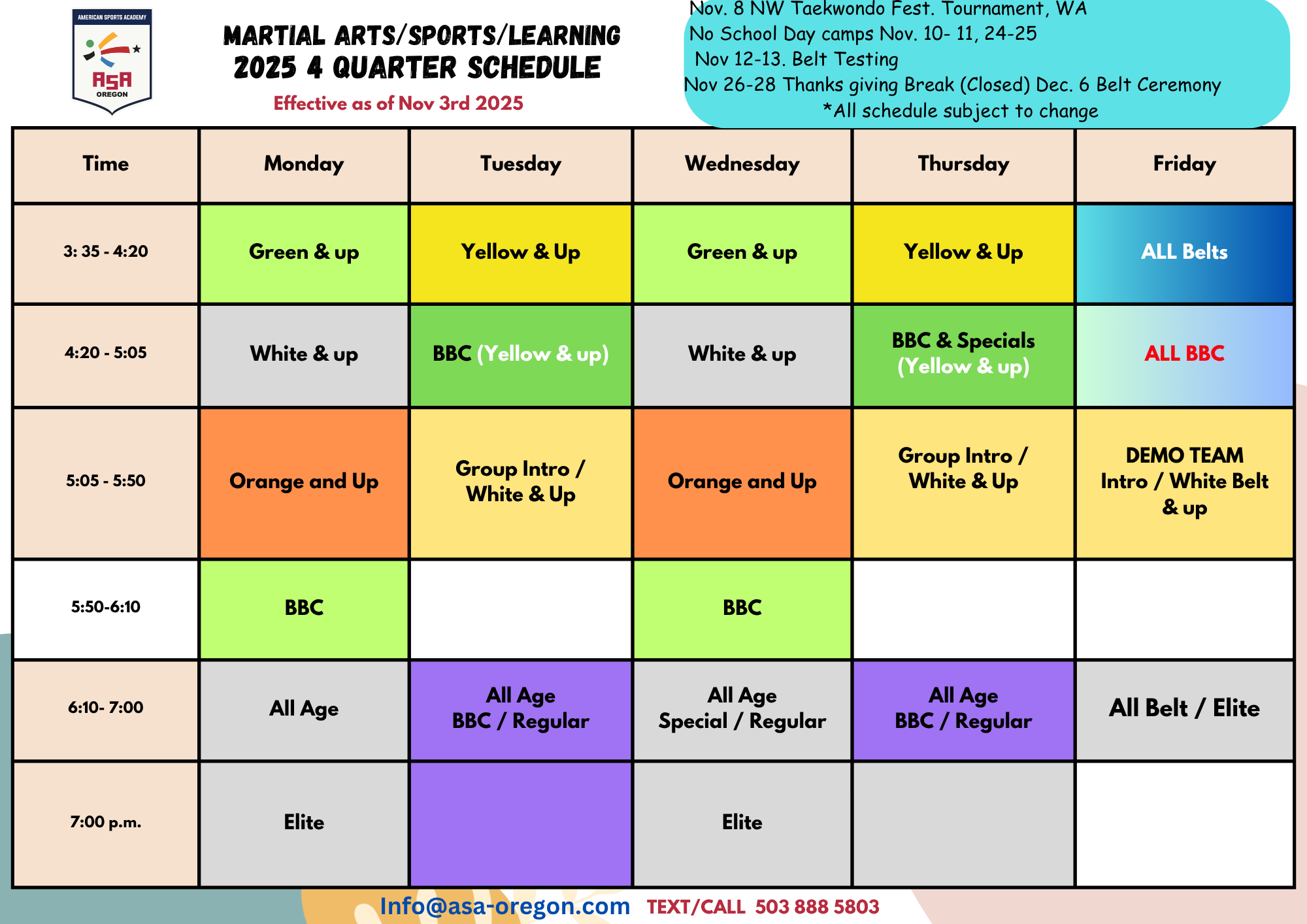 Focus ・ Self-Discipline ・ Confidence ・ Bully Proof ・ Leadership ・ Team-Work